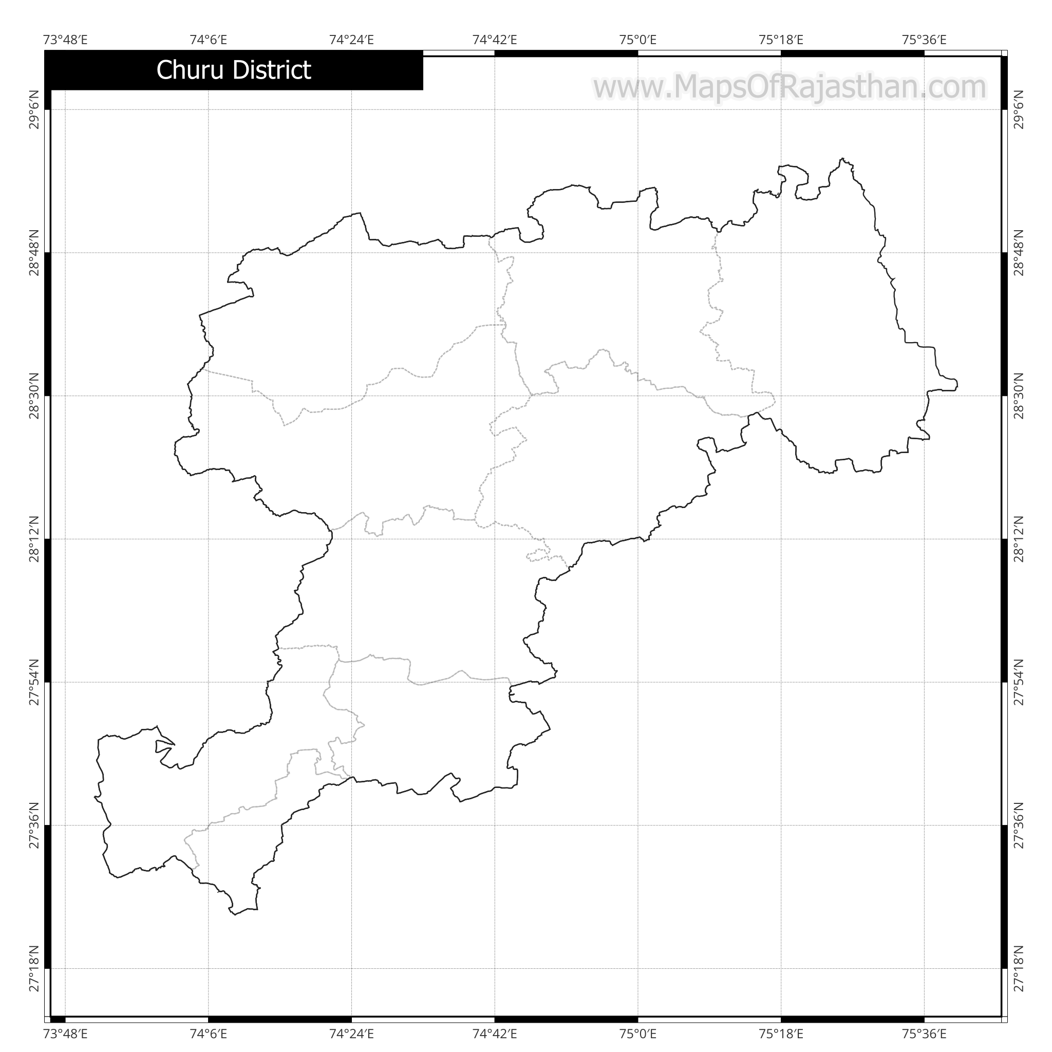 Churu District Outline Map With Tehsil Boundaries